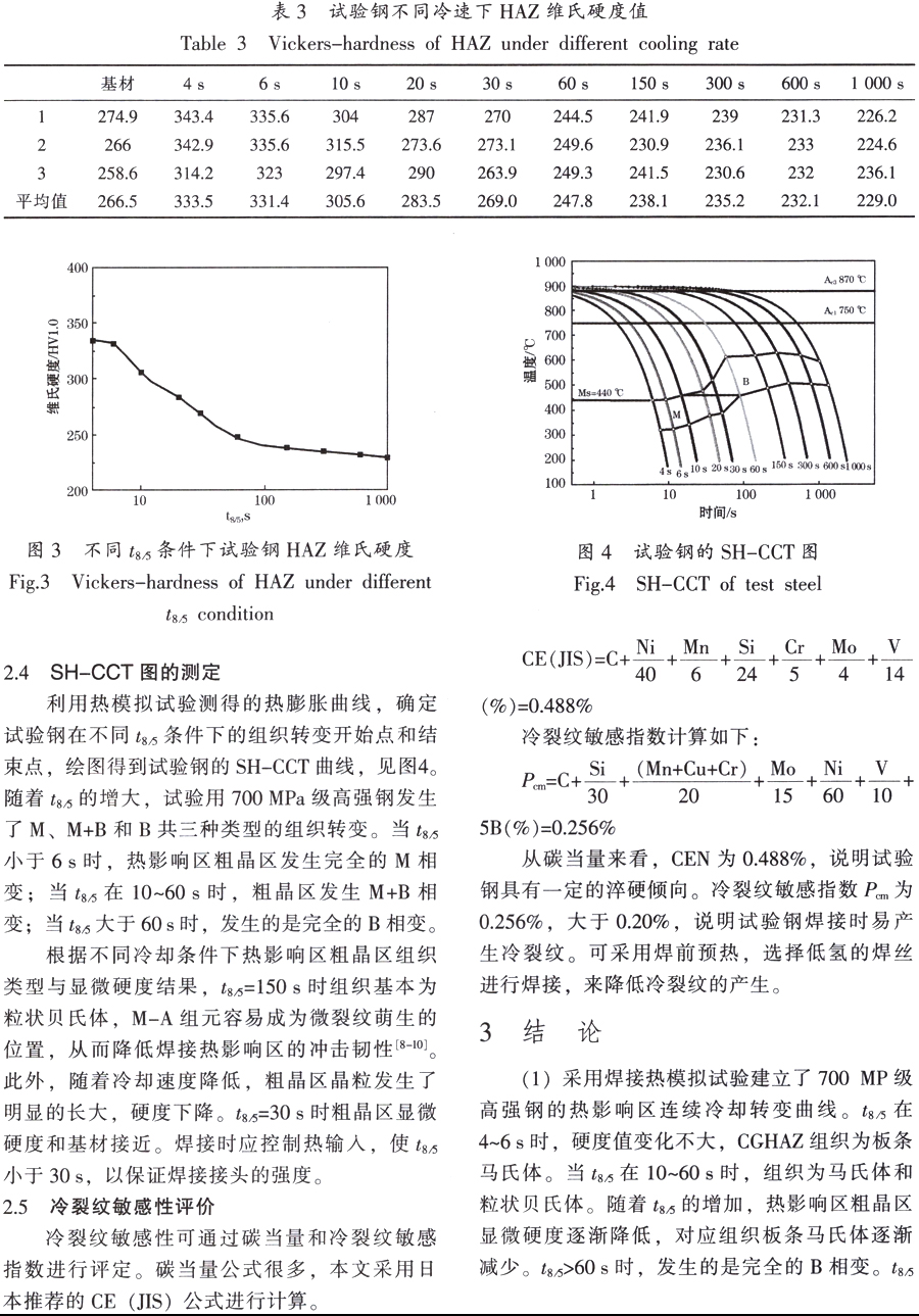 700 MPa 級(jí)高強(qiáng)鋼焊接熱模擬粗晶區(qū)組織轉(zhuǎn)變規(guī)律