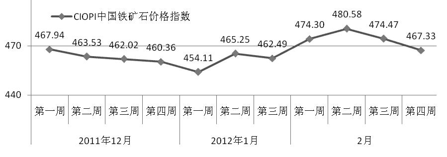 2012年2月第四周中國(guó)鐵礦石價(jià)格指數(shù)(CIOPI)