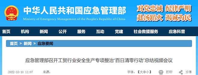 10月9日,應(yīng)急管理部以視頻方式召開工貿(mào)行業(yè)安全生產(chǎn)專項整治百日清零行動總結(jié)會議,深入學(xué)習(xí)貫徹習(xí)近平總書記關(guān)于安全生產(chǎn)重要指示精神,落實全國安全生產(chǎn)電視電話會議部署,總結(jié)百日清…