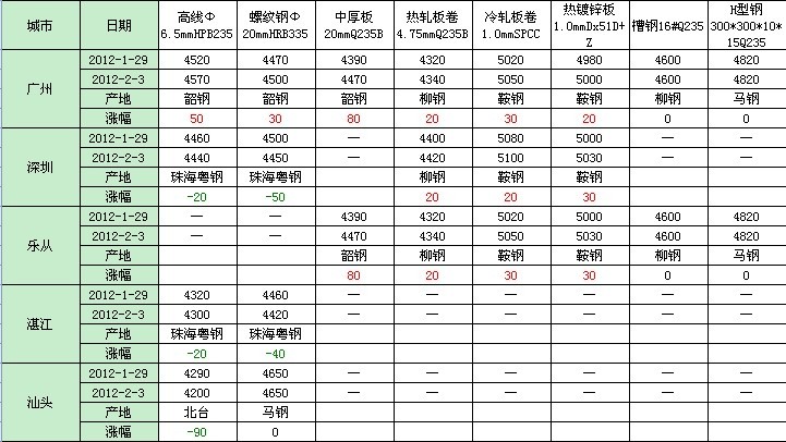 廣東省部分主導(dǎo)鋼廠調(diào)價(jià)情況匯總表(1.29-2.3)