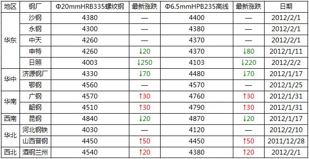 江蘇:本周南京市場建筑鋼材價格跌幅放大。由于需求跟進(jìn)乏力,加之商家?guī)齑鎵毫Σ粩嘣黾,市場供需矛盾不斷升級,商家為搶奪為數(shù)不多的需求指標(biāo),紛紛殺跌出貨,但收效甚微。由于國家對房地產(chǎn)的調(diào)控不放松,加之近期天氣嚴(yán)寒,工地開工狀況十分不理想,因此本地商家對后期市場走勢預(yù)期偏悲觀。庫存方面,據(jù)不完全統(tǒng)計,目前南京地區(qū)建材庫存約為15.7萬噸,其中螺紋鋼庫存約為14萬噸,較上周統(tǒng)計增加0.8萬噸,線材庫存約為1.7萬噸,較上周統(tǒng)計增加0.2萬噸。筆者預(yù)計,下周本地建筑鋼材價格或?qū)㈩j勢難改。截止發(fā)稿,永鋼Φ16-25mm螺紋報價4170元/噸,較上周下跌80元/噸,同規(guī)格三級螺紋價格為4270元/噸,較上周下跌100元/噸,馬鋼6.5mm高線市場價格4260元/噸,較上周下跌70元/噸。