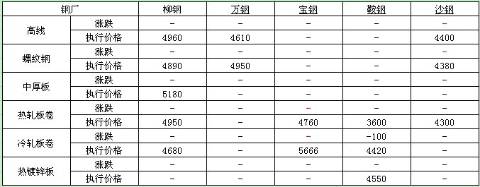 備注:1、高線:Φ6.5mmHPB235;螺紋鋼:Φ20mmHRB335;中厚板:20mmQ235B;熱軋板卷:4.75mmQ235B;冷軋板卷:1.0mmSPCC;熱鍍鋅板:1.0mmDx51D+Z;槽鋼:16#Q235B;H型鋼:300*300*10*15Q235B