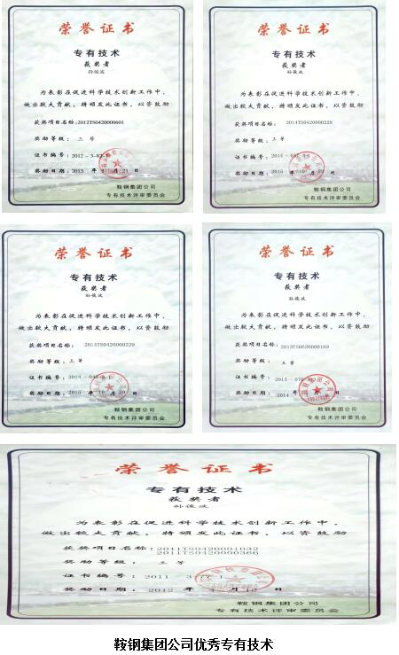 鞍鋼集團公司認定的專有技術(shù)11項;其中5項獲優(yōu)秀專有技術(shù)。