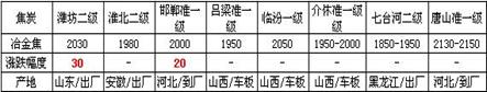 【華東市場】本月19日,兗礦率先上調(diào)氣煤價格,一號氣煤上調(diào)60元/噸,現(xiàn)出廠含稅1460元/噸,二號氣煤上調(diào)50元/噸,目前出廠含稅1450元/噸,隨后,新汶礦業(yè)、臨沂礦業(yè)、肥城礦業(yè)等均上調(diào)煉焦煤價格,帶動新一輪煉焦煤價格上調(diào)。據(jù)煤礦企業(yè)反映,目前很少接受承兌交易,基本以現(xiàn)匯為主。目前山東地區(qū)焦炭價格穩(wěn)中有漲,部分焦化廠小幅上調(diào)焦炭價格,幅度基本維持在20-30元/噸,東阿地區(qū)一級冶金焦上調(diào)20元/噸,目前出廠含稅2100元/噸;濰坊地區(qū)二級冶金焦上調(diào)30元/噸,目前出廠含稅2030元/噸;淄博地區(qū)二級冶金焦鋼廠接收價上調(diào)30元/噸,目前出廠含稅2010元/噸。