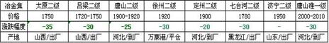 【北方市場】近期山西焦炭市場普遍出現(xiàn)下跌30-40元/噸,雖部分火運資源價格仍未確定,但市場弱勢格局已定,價格下行已無懸念。目前山西地區(qū)二級冶金焦主流1730-1750元/噸,準一級冶金焦為1810-1830元/噸,均為承兌出廠含稅價。據(jù)山西地區(qū)焦化企業(yè)方面稱,目前焦炭價格已降到極限,雖然鋼廠方面也在虧損,但焦炭價格繼續(xù)下行的空間已非常有限,若焦炭市場繼續(xù)保持現(xiàn)在的低迷狀態(tài),后期有繼續(xù)加大限產(chǎn)的可能。