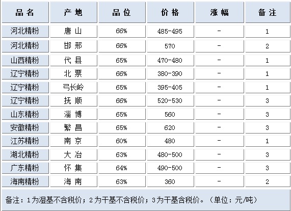 - 6日東北市場(chǎng)部分鋼廠鐵精粉采購(gòu)價(jià)格