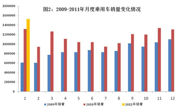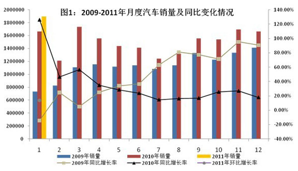 2011年1月,汽車產銷市場保持穩(wěn)定發(fā)展,汽車銷售近190萬輛,再創(chuàng)歷史新高。