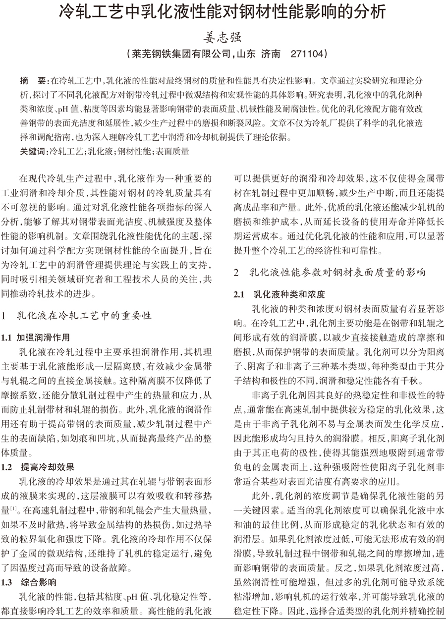 冷軋工藝中乳化液性能對(duì)鋼材性能影響的分析